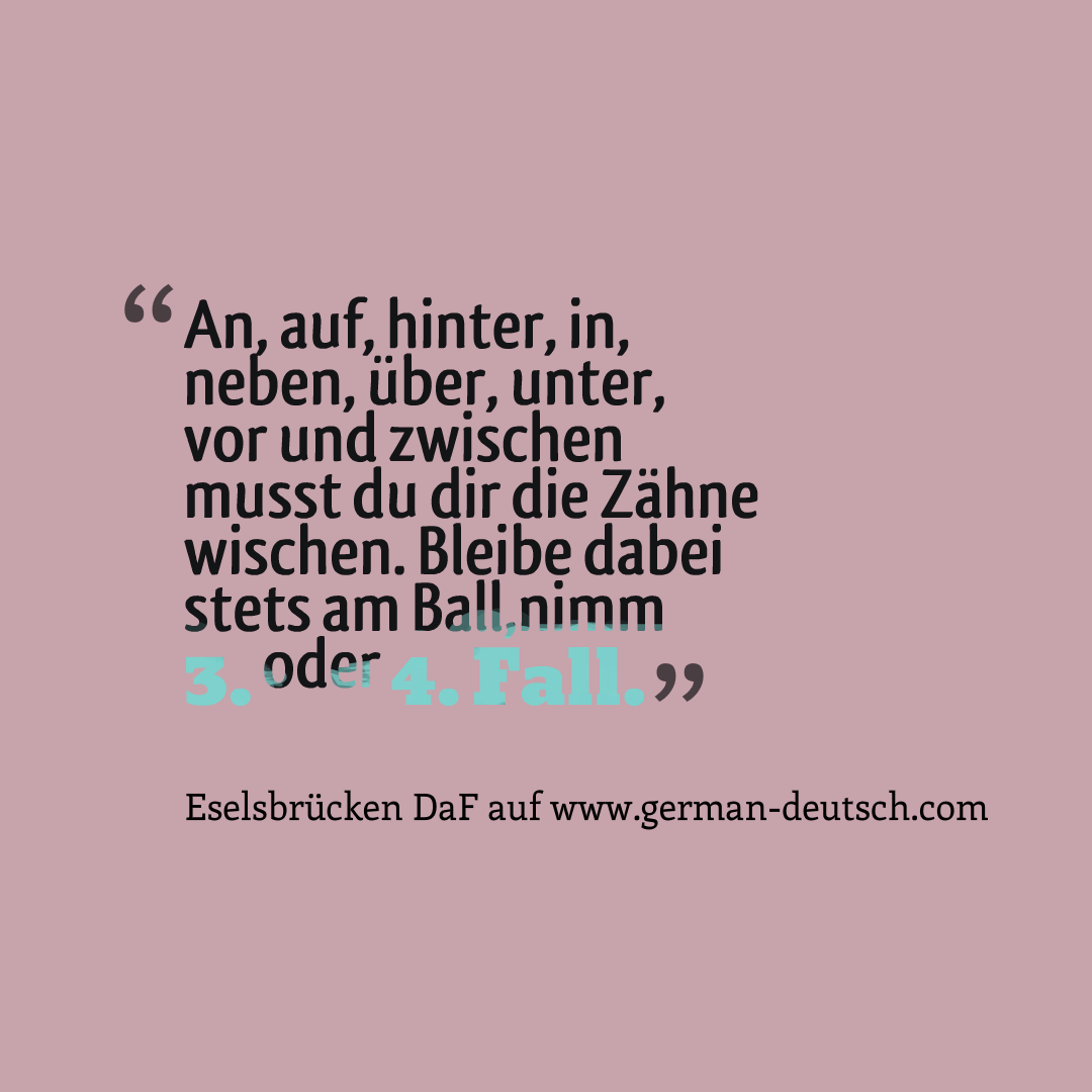 Mit „Esel“ wird im Deutschen auch ein Mensch bezeichnet, der nicht schnell begreift. Für den „Esel“ wurden deshalb sogenannte sprachliche „Eselsbrücken“ geschaffen, damit dieser rascher an das Lernziel gelangt!